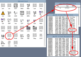 Excel で中国語・日本語を併用するには、パッチを当てた Excel を ResEdit で開き、plst リソース ID=0 の 000F8 の行から 00100 の行にかけての